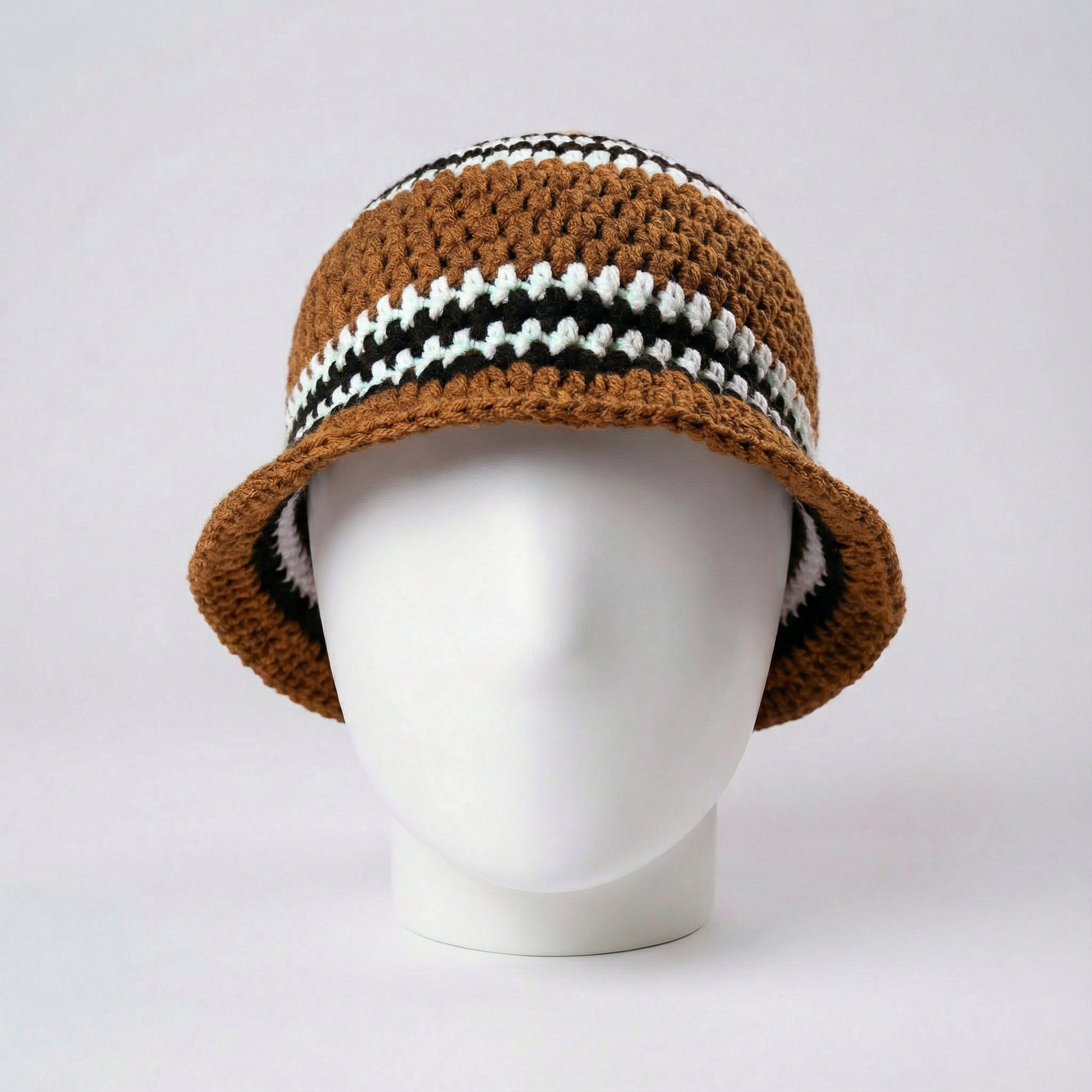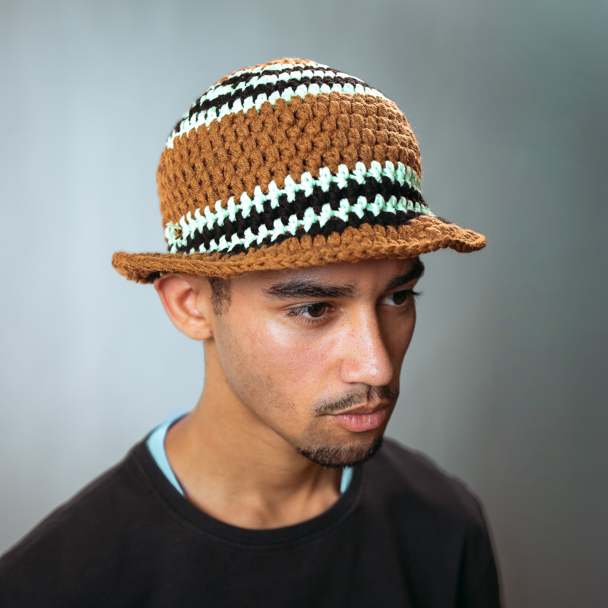 A fun blend of brown + light green high-quality cotton yarn. 100% Hand-made. Inspired by the classic traditional design.